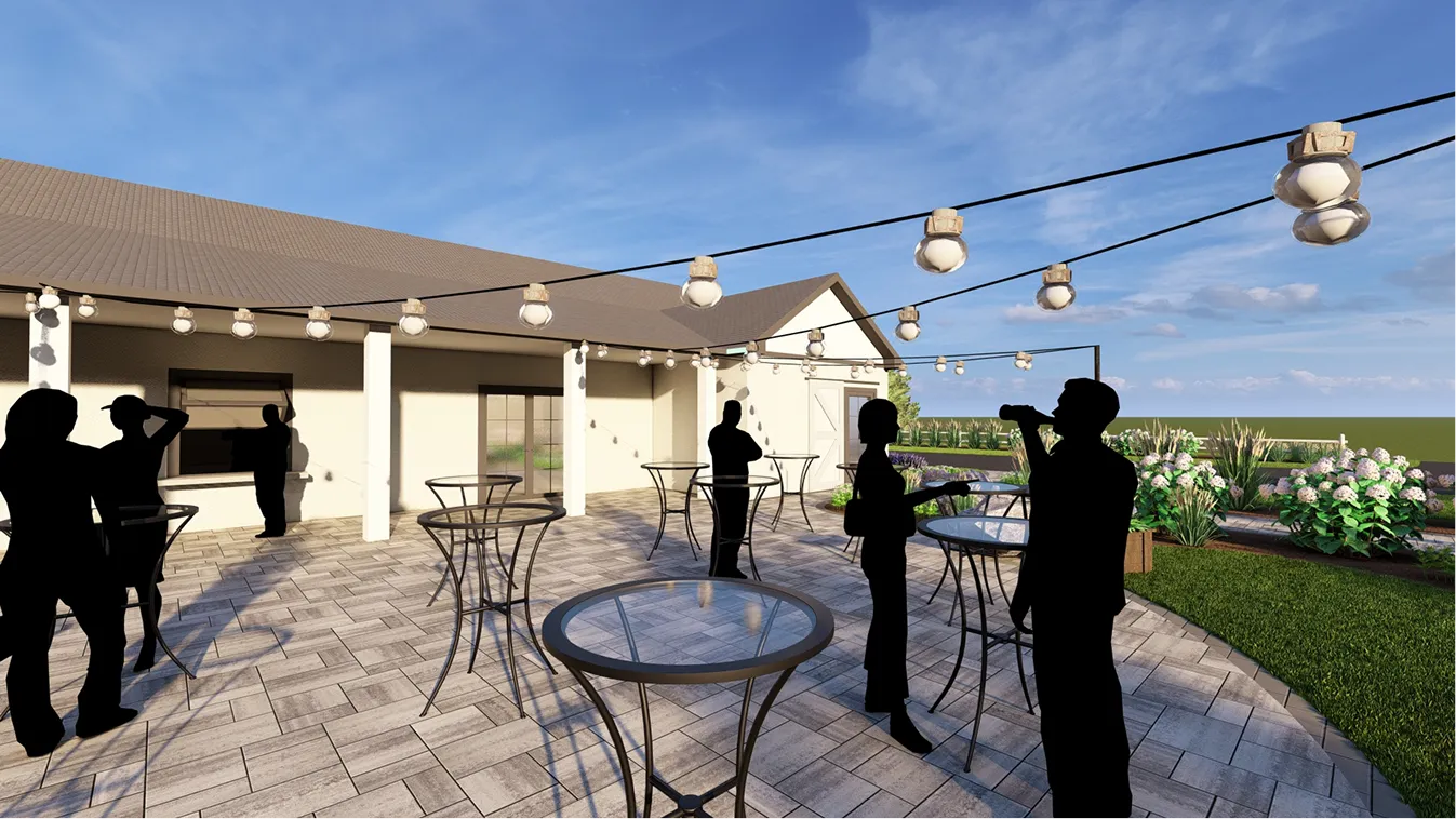 A grand walkway, constructed from locally sourced pavers, leads guests gracefully to the entrance and extends into a patio gathering space for receptions. Thoughtful plantings frame the venue, providing seasonal color while also creating natural separation from the parking area and neighboring properties. This not only ensures privacy during ceremonies but also enhances the sense of intimacy and celebration.